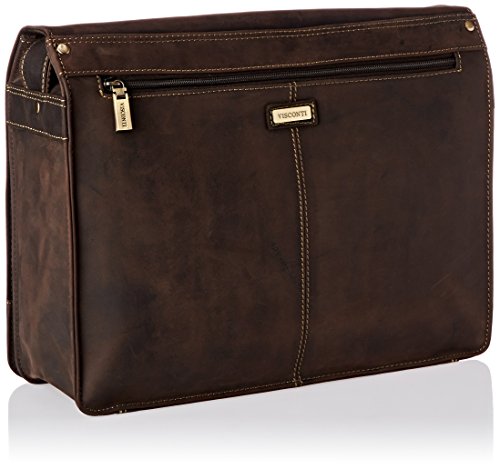 Studio : Visconti Luggage Publisher : Visconti Luggage Binding : Apparel Product Description Visconti 18548 messenger bag is made from top quality leather and has double and contrast stitching. It comes with an adjustable long 60 inch shoulder strap to comfortably fit the tall and the short and there is a sliding rubber shoulder grip for comfort when carrying heavy loads. The 18548 has a full front flap over held down with 2 antique magnetic brass snaps holding the flap securely and safely shut. Under the flap and as well at the rear of the bag there is a wide zipped pocket across the width of the bag as well as an open folder for slipping in a newspaper, paper notebook or manila envelopes. The inside of the bag is lined with card holders, pen holders and a cell phone pocket. As well there is yet another zipped pocket for important documents on the opposite side of the bag. The interior itself is of nice size and can hold 3 loose-leafs, or an iPad with2/3 books/textbooks . The color of the leather is a stylish distressed looking mud brown, it also has a stylish professional look to it that can be used for office / business or school. . The bag may have wrinkles, scars, scratches that are inherent characteristics and natural beauty of the hide all giving it the distressed look. Due to the nature of this product please avoid contact with light colored fabrics as there may be color transference. 0