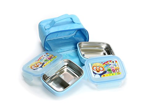 -. Title : Pororo Stainless Steel Double Lock Bag Lunch (2) (Blue)