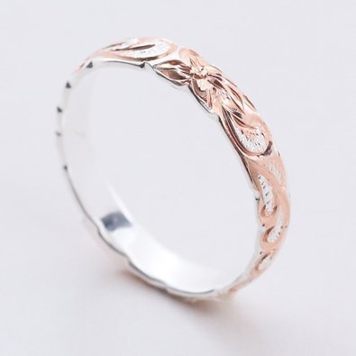 -. Title : LocoMocoAloha ハワイアンジュエリー リング 指輪 Silver925 ピンキーリング 4mm ピンクゴールド シルバー 波 プルメリア 【正規品保証】
