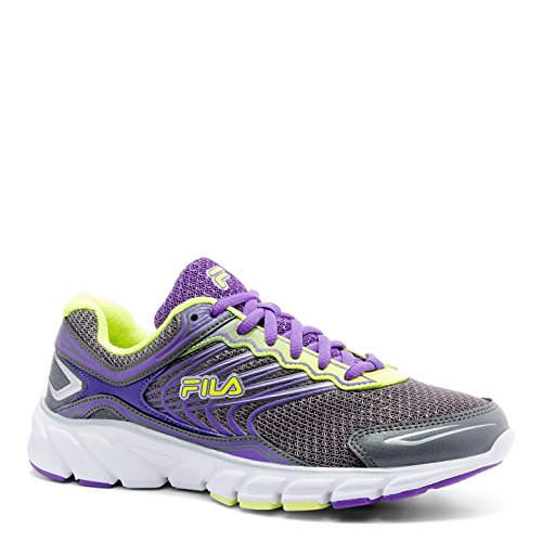 Fila Women's Memory Maranello 4 Running Shoe, Pewter/Electric Purple/Safety Yellow, 8.5 M US