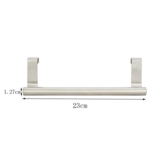9 INCH WIDE BAR - REMOVE CLUTTER FROM YOUR KITCHEN. Tired of the clutter in your home? Remove the problem by using the space on your doors. Get enough space to hang your items. The great thing about these stainless steel towel bars is that you can hang them on just about any door all over the home or office. Set of 2 universal door hook towel bars are compatible with most kitchen drawers and doors.