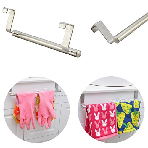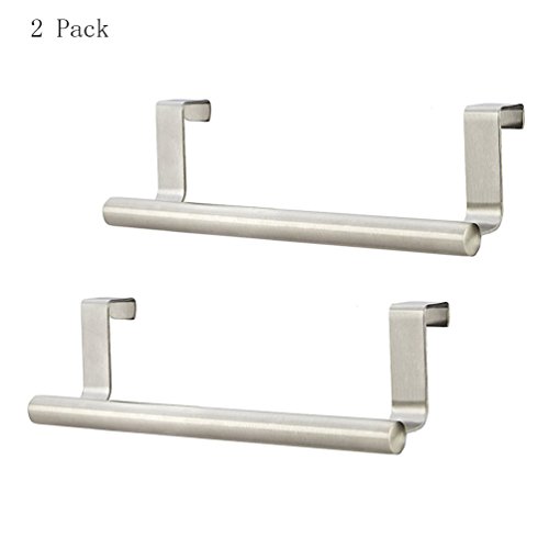 Mosuch Stainless Steel Over Door Towel Rack Bar Holders for Universal Fit on Cabinet Cupboard Doors Pack of 2