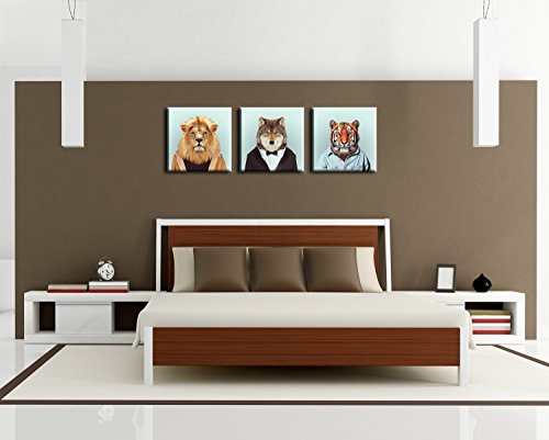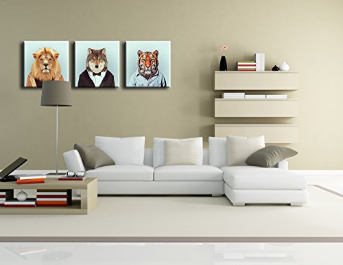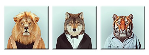 -. Title : FASKUNOIE-Creative Animal Paintings Canvas P.R.Ints Modern Wall Art Personified Wild Animals Artwork for Room Decoration 12x12 inch