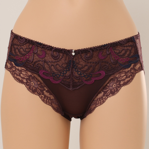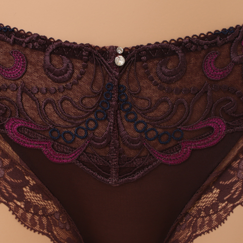 엔젤망레이스와 매칭되어지는 스트레치 레이스로 뒤판 전체를 사용하여 섬세하고 감각적인 이미지의 제품으로 제안한다. 옆선이 다소 긴스타일로 엉덩이를 충분히 감 싸주어 편안한 착용감을 준다.