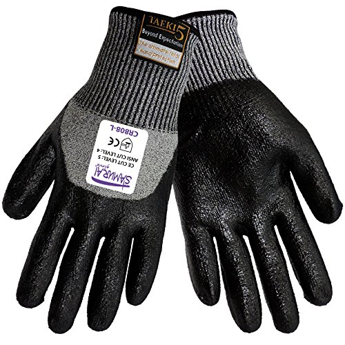 Studio : Global Glove Publisher : Global Glove Binding : Misc. Product Description Global Glove CR808 provides the latest technology in comfort and cut resistant gloves. The Samurai CR808 incorporates Taeki5 technology uses a revolutionary duracore spinning process and an innovation silicon reinforced fiber. The technology advancements in our engineered yarn bring you the exceptionally high cut resistant without sacrificing dexterity and tactile sensitivity. Specially formulated 3/4 dipped Tsunami Grip Tuff nitrile. The glove is dipped 3/4 for added liquid protection and knuckle protection. Nitrile affords excellent oil and chemical resistance. Dexterity and comfort are the best available in this level of cut resistance. This super lightweight shell provides EN 388 level 5 and ASTM level 4 cut resistance, comfort and the ability to dip into many chemicals to retrieve sharp objects. Perfect for handling sharp objects such as sheet metal, glass or razor sharp steel. General purpose. Gray and black liner color. Coating color: black. Coating composition: Nitrile 3/4 dip. Smooth exterior finish. Elasticized knitwrist cuff finish. Taeki5 liner provides excellent cut resistance and dexterity. Black hides soil, extending glove wear life. Ergonomically designed forms provide naturally curved, relaxed fit to reduce hand fatigue. Provides good wet and dry grip. Applications: assembly involving small sharp components, automotive, white goods, plastics, glass. 0