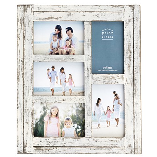 -. Feature : Wood collage / Displays five of your favorite 4x6 photos / Hand distressed finish / Beveled matting / Two-way easel and wall hanger