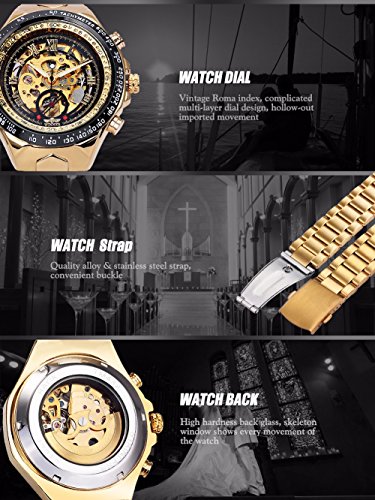 -. Title : K-STYLE メンズ 腕時計 スケルトン仕様 自動巻き ドレスウォッチ ゴールド a059 (ゴールド)