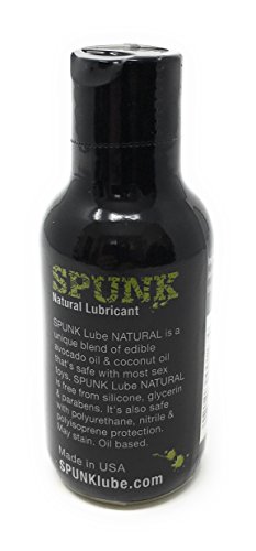 -. Feature : Unique blend of edible oils (virgin coconut oil & organic avocado oil). It is a Vegan friendly lubricant. / Free from silicone, glycerin & parabens as well as other skin weakening ingredients. It's chemical free and feels wonderful on your skin. / It is a moisturizing sex oil that's edible, protein rich and high in vitamin A, D & E. It's also hypoallergenic and anti-bacterial. / It can be used with polyurethane, nitrile, polyisoprene & CF2 protection (not latex). It can be used with silicone, metal, glass, and hard material toys. / SPUNK Lube NATURAL isn't for low quality grade or porous sex toy materials like jelly, vinyl, rubber, TPR, PVC, TPE or latex.