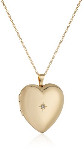 14k Gold-Filled Large Polished Heart Pendant with Genuine Diamond Locket Necklace, 18"