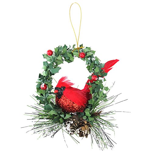 NORTHLIGHT NL00083 Cardinal in Holly Wreath Christmas Ornament, 5.25"