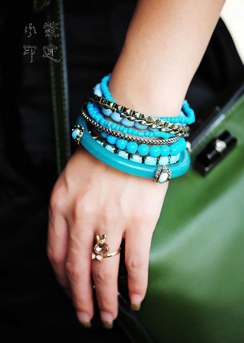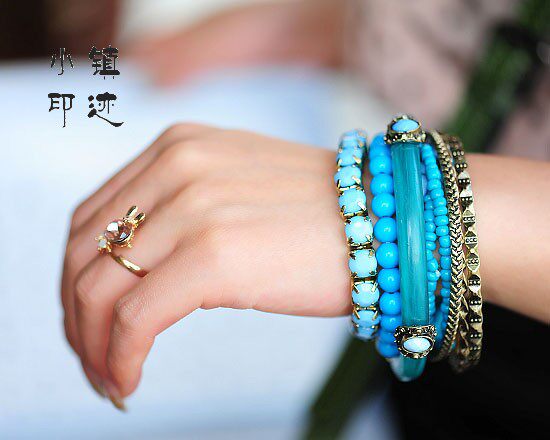 Description: A total of nine laps, including four bracelets, five bracelets, can be separated to wear, you can wear together, after quite a bohemian feel to get started