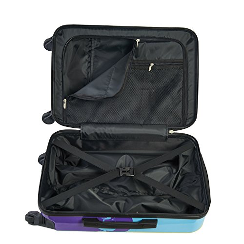Studio : Concept One Accessories Publisher : Concept One Accessories Binding : Apparel Product Description Fly through the air with the greatest of ease! this convenient rolling upright carry on makes it easy to take the fab four along on every trip. It lets you beat rough airline handling with an heavy-duty ABS plastic outer shell. The suitcase offers smooth and easy maneuvering with multi-directional spinners. A dependable aluminum telescopic pull handle provides hassle-free transportation, while a divided full-body main compartment lets you organize your items with ease. The interior zipper compartment is the perfect size for your travel size bottles, and compression straps help you pack more items and prevent contents from spilling. The luggage also includes retractable top and side panel handles for easy loading into cars and overhead bins. It is lined on the inside with nylon that is durable and moisture resistant. Easy to spot clean 0