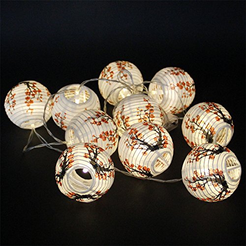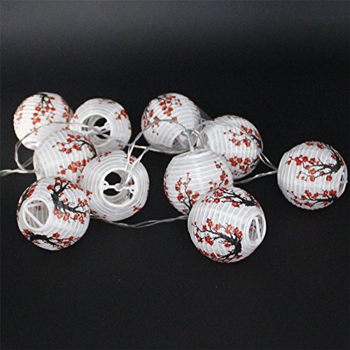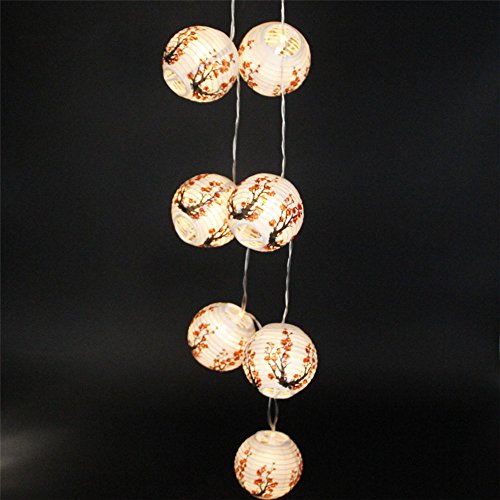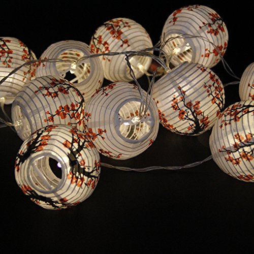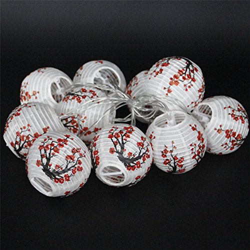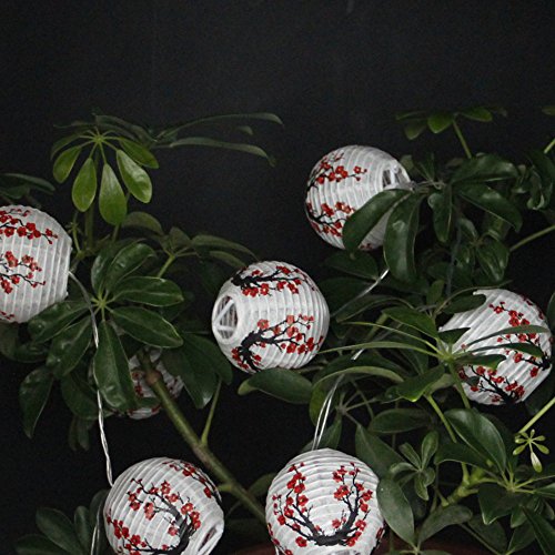Red Sakura (Cherry) Flowers White Color Chinese Japanese Paper Lantern Lamp LED String Lights Battery Powered 63'' Length Plum Blossom