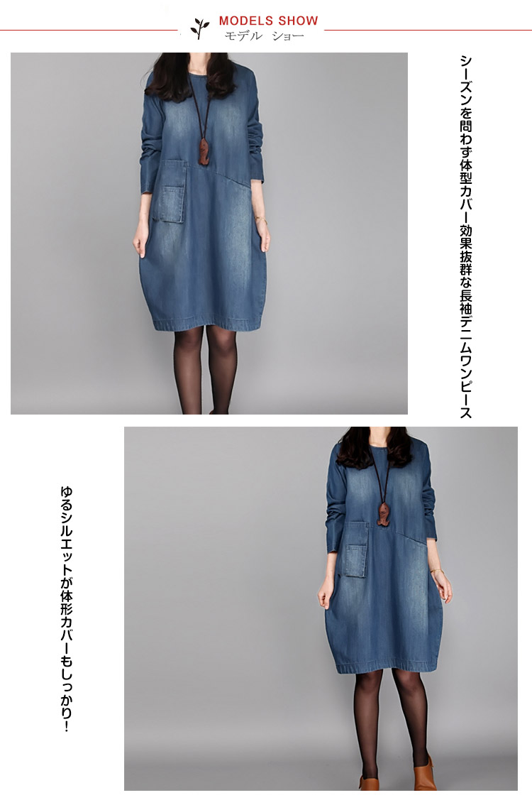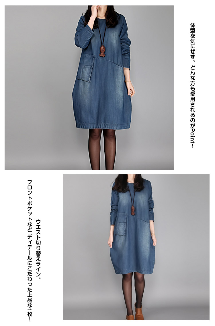 | シーズンを問わず体型カバー効果抜群な長袖デニムワンピースゆるシルエットが体形カバーもしっかり! 体型を気にぜず、どんな方も愛用されるのがPoint!ウエスト切り替えライン、フロントポケットなど ディテールにこだわった上品な1枚!オールシーズン着用可能☆ しかも、うれしい6サイズ展開で、オシャレの幅が広がります☆余計な飾りなどなくシンプルながら大人らしい一着で上品にまとまります♪ | |