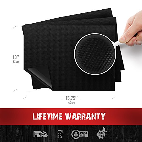 LIFETIME GUARANTEE - We are confident in our product and give 100% RISK-FREE Satisfaction Guarantee on this cooking grilling mat set. We are sure you will be impressed with its lightweight, easy use clean grilling - one of the best grilling mats