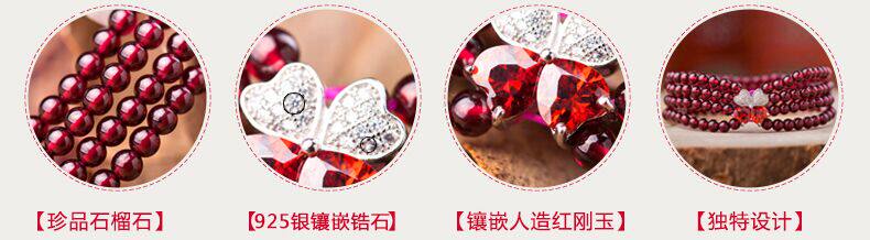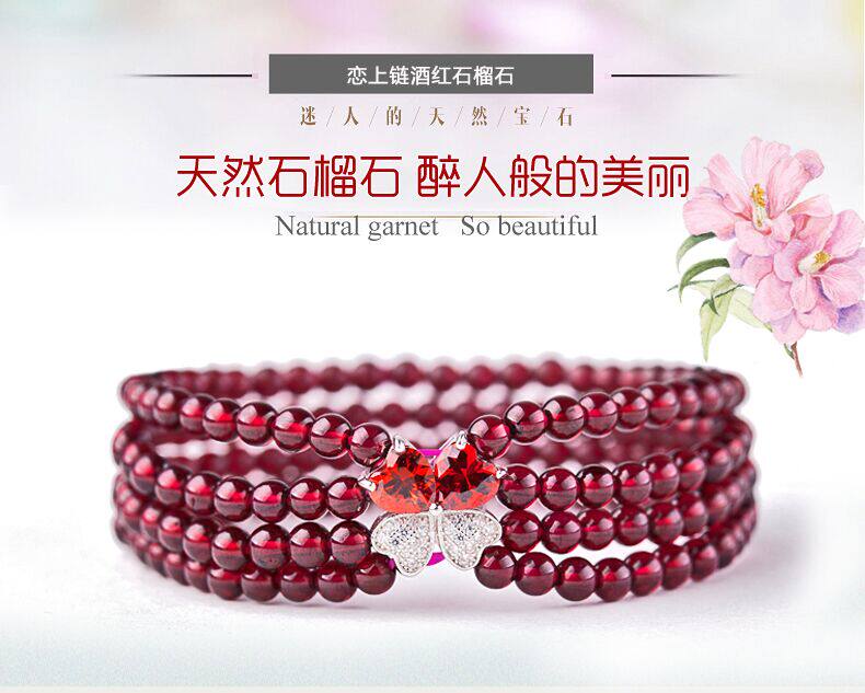 天然5A石榴石手串女多圈民族风时尚水晶925银韩版手链