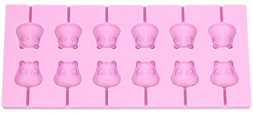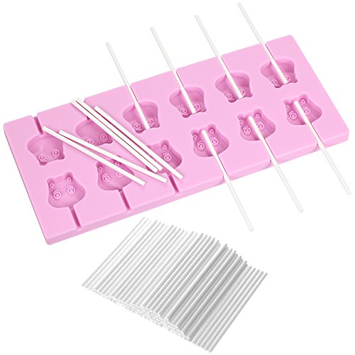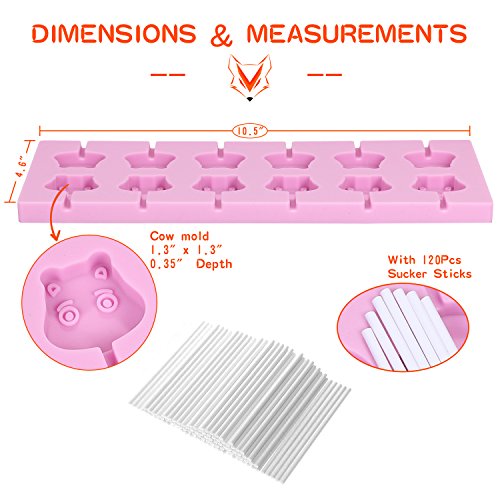 V-fox 12-Capacity Cartoon Cow Chocolate Hard Candy Silicone Lollipop Molds with 100 count Lollypop Sucker Sticks for Halloween Christmas Parties