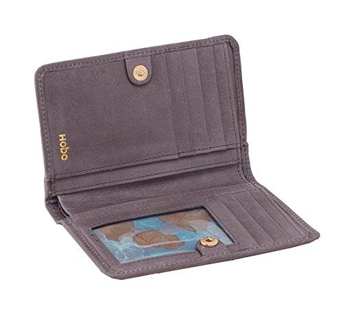 -. Binding : Apparel -. Brand : HOBO -. Department : womens -. Feature : Made for the woman who likes her wallets a little more minimalist in nature / Interior features 6 card slots, 2 slip pockets, thumb-glide ID holder and lined bill compartment / Zip around pocket gives this card case a vintage feel / Compact size makes it easy to fit into any purse, be it a large tote or a small crossbody / Measures 5" x 3.5" x 0.5" -. Label : Hobo -. Manufacturer : Hobo -. Model : TN-1205910-P -. PackageQuantity : 1 -. ProductGroup : Apparel -. ProductTypeName : ACCESSORY -. Publisher : Hobo -. Studio : Hobo -. Title : Hobo Women's Leather Loral Compact Bifold Wallet
