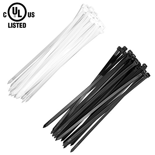 Cable Zip Ties Heavy Duty 12 Inch,100 Pieces, Zip Ties with Ultra Strong Plastic Wire Ties with 120 Pounds Tensile Strength,Nylon Tie Wraps with 0.3 Inch Width in Black & White, Indoor and Outdoor