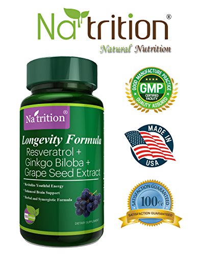 -. Title : Longevity Formula - Ginkgo Biloba Extract plus Trans-Resveratrol Polyphenols and Grape Seed Extract - Best Herbal Supplement for anti-aging and metabolism, 120 veggie Capsules/ Bottle