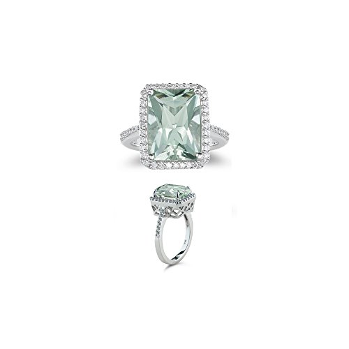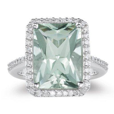 -. Title : 3/4 (0.71-0.80) Ct Diamond & 6.50 Cts AAA Green Amethyst Ring in 14K White Gold