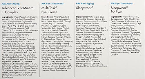 -. Feature : Sleepwear: smoothes the appearance of lines and wrinkles, helps revitalize firming collagen and elastin, helps strengthen skin's protective barrier layer and encourages younger-looking skin / Sleepwear for eyes: decreases the appearance of wrinkle length and depth, visibly reduces fine lines, increases the feel of firmness around eyes and nourishes thin, fragile skin / Multi-task eye creme: minimizes dark undereye circles, helps reduce puffiness and moisturizes to ease fine lines / Advanced vitamineral C complex: clarifies, brightens and energizes skin, defends against toxins that cause dullness and aging, detoxifies and smoothes and helps skin naturally repair itself