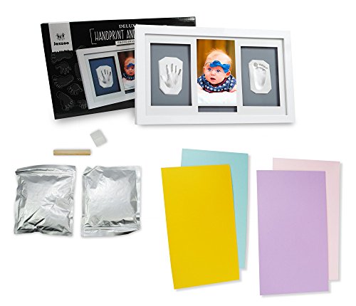 Studio : Megaorb Publisher : Megaorb Binding : Baby Product Product Description Baby Clay Handprint and Footprint Photo Frame Kit for Newborn Boys and Girls - Unique Baby Shower Gift for Registry. Includes: 1 deluxe picture frame, 2 pcs of 50g light clay, 1 wooden roller, 2 pcs of double sided sticker. Background colors: Grey, Blue, Pink, Yellow, Purple. This keepsake makes an excellent baby shower gift that will last forever! Great gift to new parents, grandparents, aunts, uncles or other loved ones. Will also make a special baptism or christening keepsake. 0