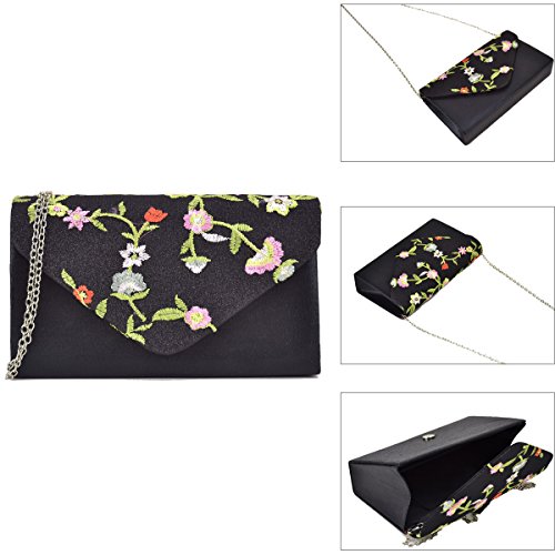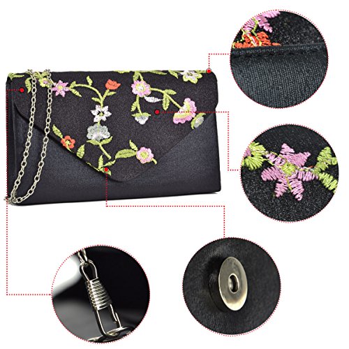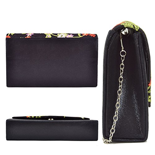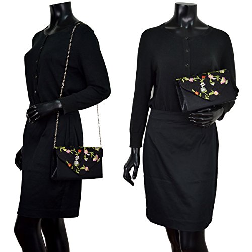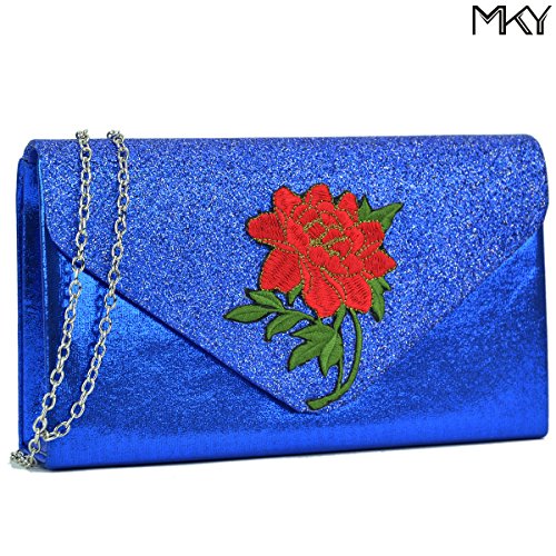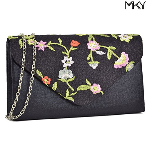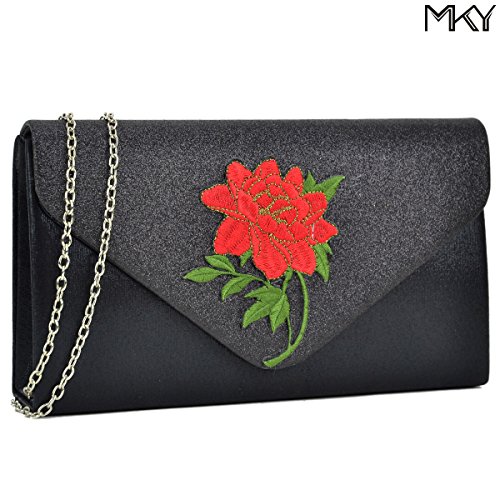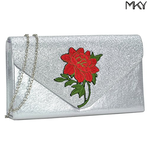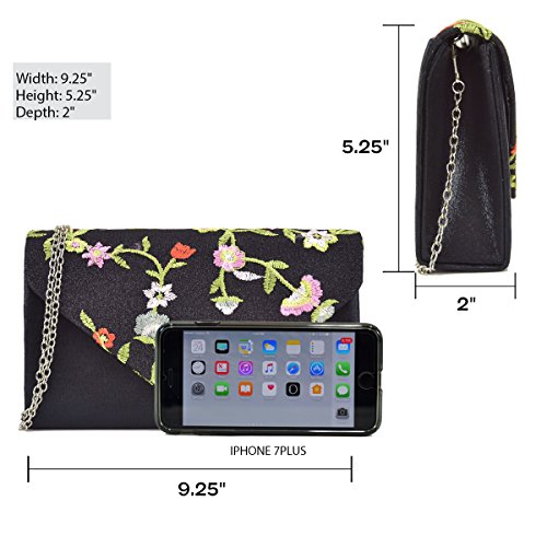 Product Description This evening envelope style clutch with it's unique flower patch design along with it's velvety frosted texture, smooth and soft to carry during your special occasion. Inside can easily fit a cell phone, wallet, compact mirror, lip gloss, and a pack of gum. Conveniently, you can spend the night hands free with the detachable silver chain that is included.