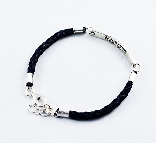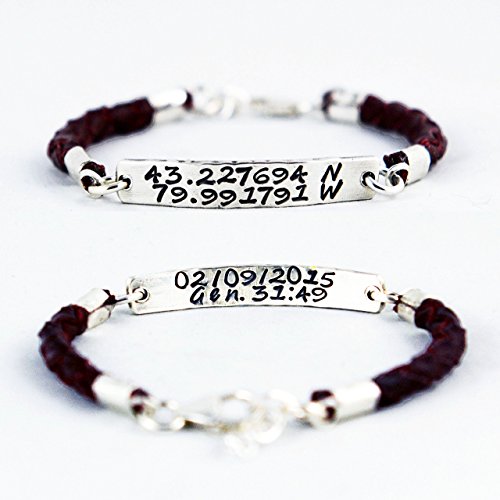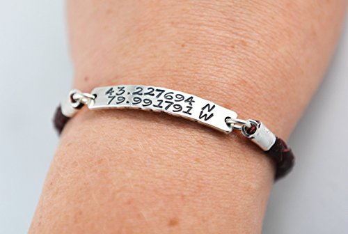 -. Title : Latitude and Longitude coordinates - hand braided Genuine Leather and Sterling Silver bracelet