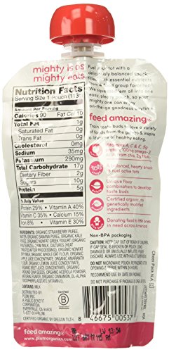 Mighty 4 pouches, a puree of organic fruits, veggies, protein and grains, are the perfect snack for toddlers. Every pouch is filled with essential nutrients from 4 food group favorites to fuel your active tot. And with amazing flavor combos squeezed into one pouch, we make it easy for your mighty one to enjoy on-the-go goodness anytime.Feature