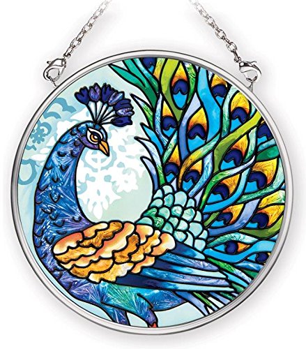 Amia 42012 3-1/2-Inch Hand Painted Glass Circle Suncatcher, Small, Peacock Design