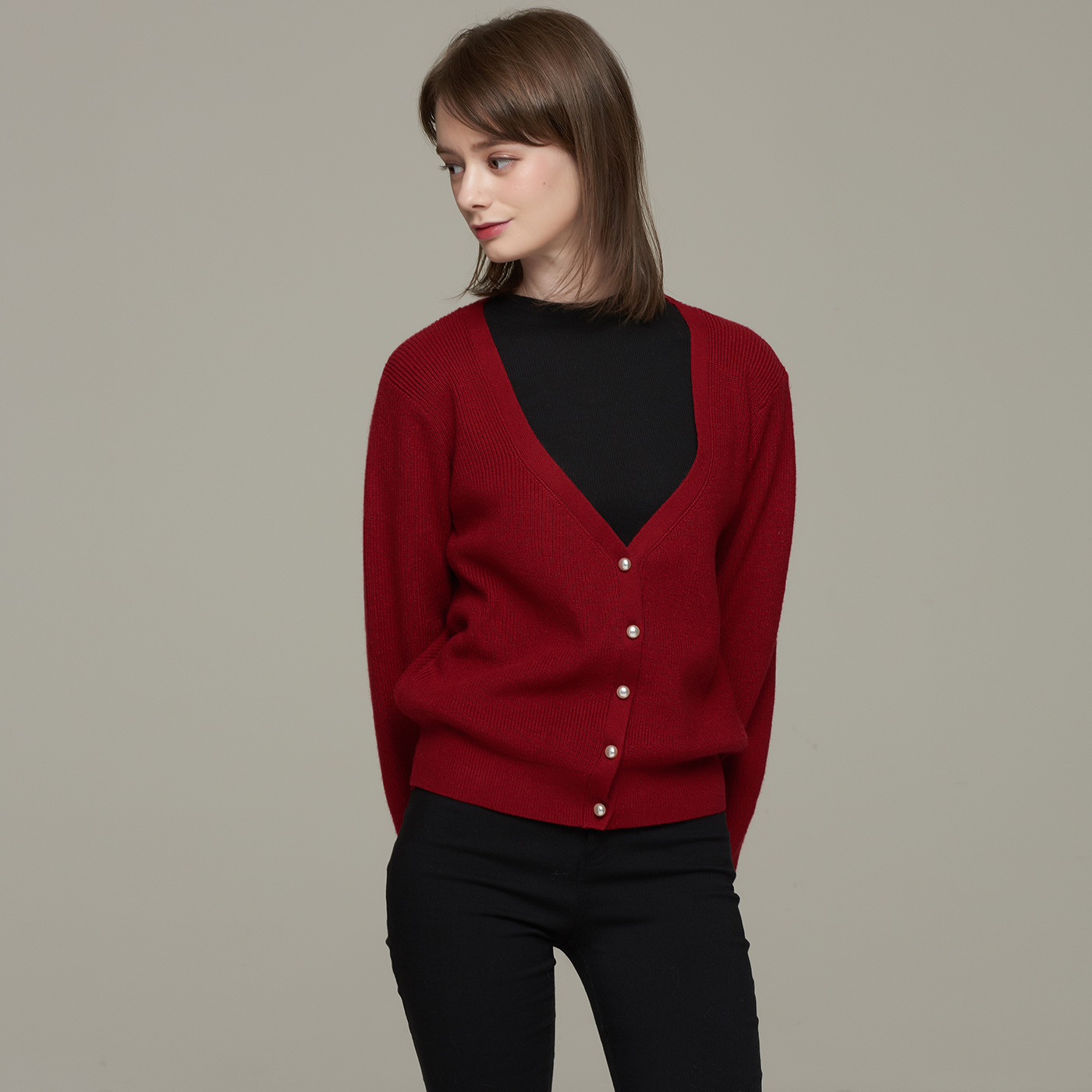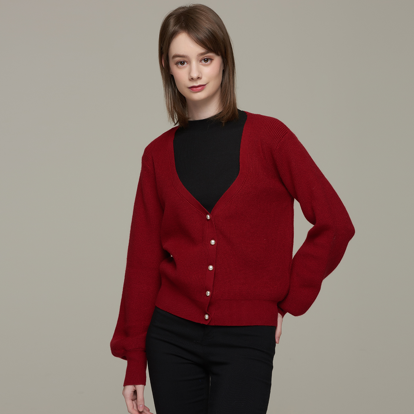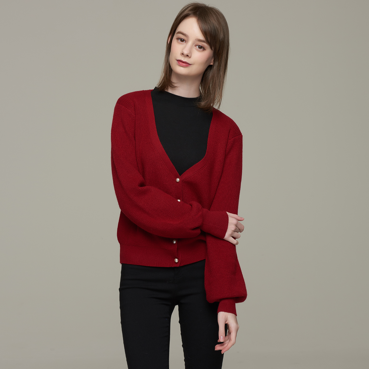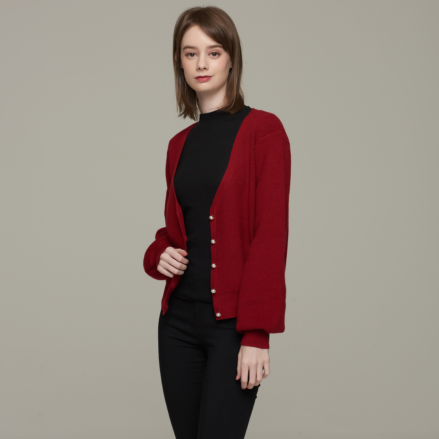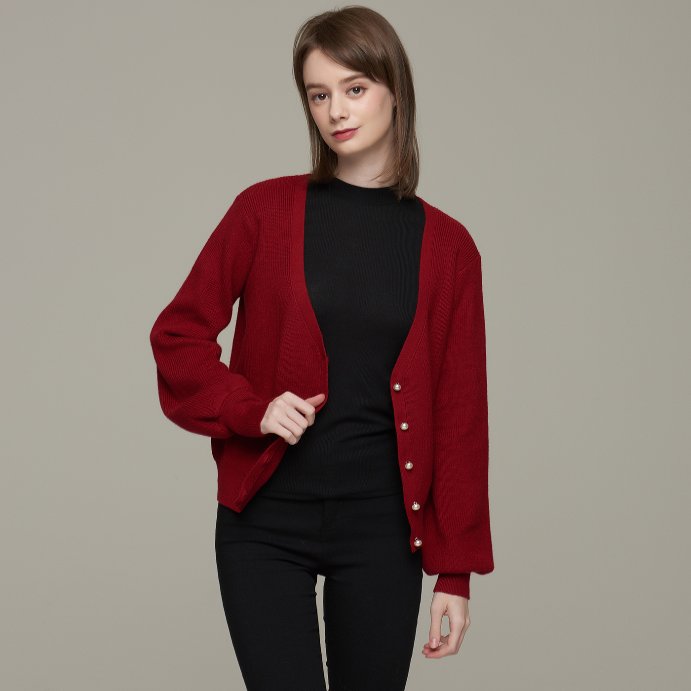 소매볼륨감이 우아하며 컬러감이 고급스런 기본 니트 가디건입니다.