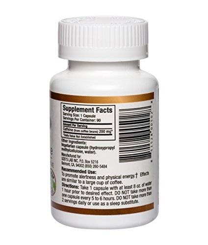 PURE Caffeine Pills - Extracted from Coffee Beans - Not Synthetic! No Fillers - Vegetarian Capsule