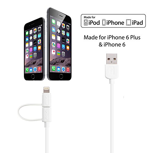 [Apple MFi Certified] Skiva USBLink (3.2 ft) Lightning Duo 2-in-1 Sync and Charge Cable with Lightning & microUSB connectors for iPhone 6 6Plus, iPad Air mini, Samsung & more [Model No.: CB104]