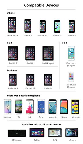 Compatibility: Fast Charge and Rapid Sync for most Apple / Android / Windows smartphones/tablets including iPhone 6 6Plus 5s 5c, iPad Air2 mini3, iPod touch nano, Samsung Galaxy, LG, HTC and more.