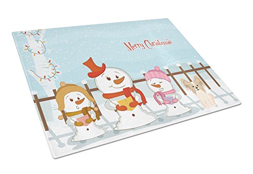Caroline's Treasures BB2408LCB Merry Christmas Carolers Papillion Sable White Glass Cutting Board, Large, Multicolor