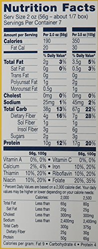 -. Feature : Twisted tubular shape that is traditionally used in soups / Cooks in 7 minutes / Plus fortifies with protein, iron and omega-3s for extra nutrition / Good source of thiamin, folic acid, iron, riboflavin and niacin / Product of USA, kosher certified
