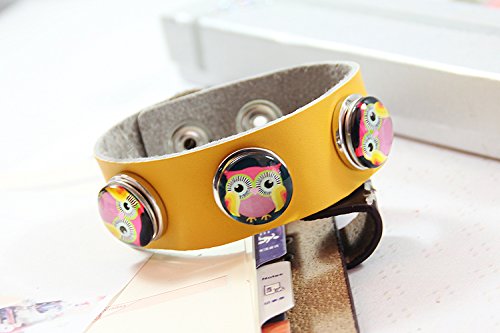 - Title : Modern Fantasy Three Circular Colour Owl Buckle Handmade Elaborate Collocation Leather Wrap Bracelet (yellow)