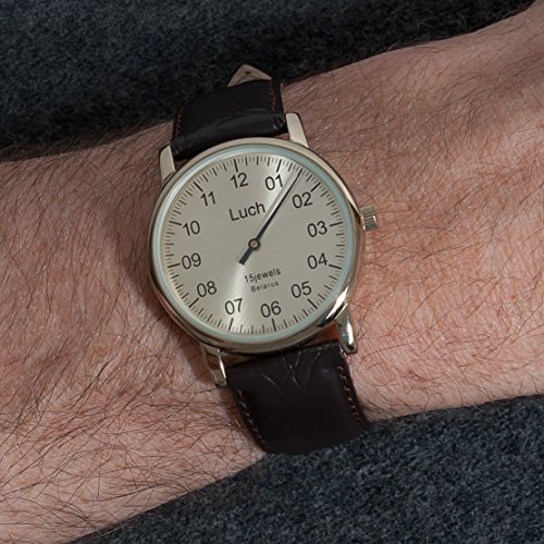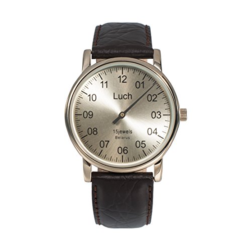 LUCH Unique Authentic Luch Water Resistant Wind up Watch with ONE Hand Zirconium Case Gold Dial