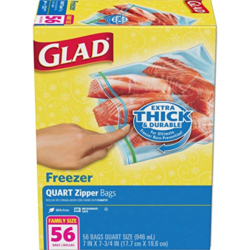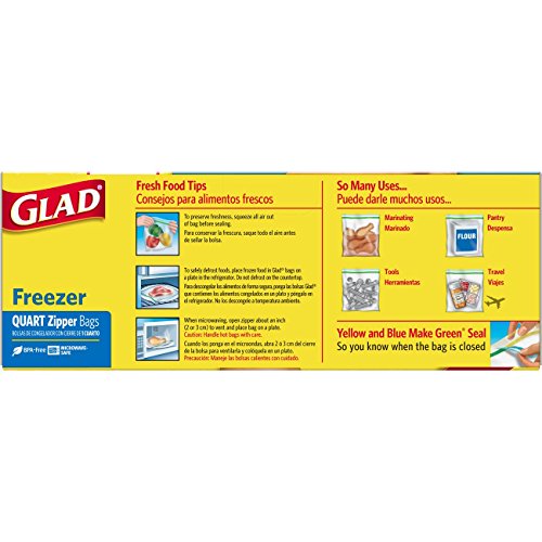 ZIPPER QUART FREEZER BAGS: Glad zipper freezer bags are BPA free and an essential for a busy kitchen - 224 Count