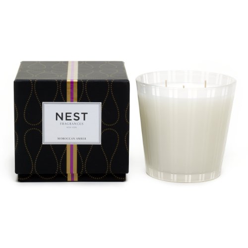 NEST Fragrances Moroccan Amber 3-wick candle includes notes of moroccan amber, sweet patchouli, heliotrope and bergamot that are accented with a hint of eucalyptus.