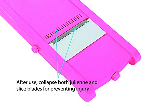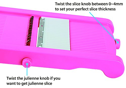 - Feature : PREPARE FOOD LIKE A PRO - Dramatically reduce your ingredient preparation, saving your money and cooking time even if you are not a cooking master. / PATENTED SLICER SET - Stop continuously interchanging different stainless steel blades. Our all-in-one mandoline slicer covers all of your vegetable, fruit, and cheese slicing, grating & cutting needs. / HIGH QUALITY STAINLESS STEEL BLADES & FOOD-SAFE PLASTIC FRAME - Built-in blades made of the highest quality military grade steel, always stay sharp. The plastic frame uses food-safe ABS plastic frame so you can feel at ease when you use. / EASY TO SLICE AND CLEAN - Super easy to control the slicing thickness as you want (0~4mm) with adjustable slice and julienne blades. After use, just rinse under running water and dishwasher safe. / THE ONLY & LAST KITCHEN SLICER YOU WILL EVER NEED - We are so confident you will love this all-in-one mandolin set that we offer the best no questions asked LIFETIME GUARANTEE - ADD TO CART NOW.