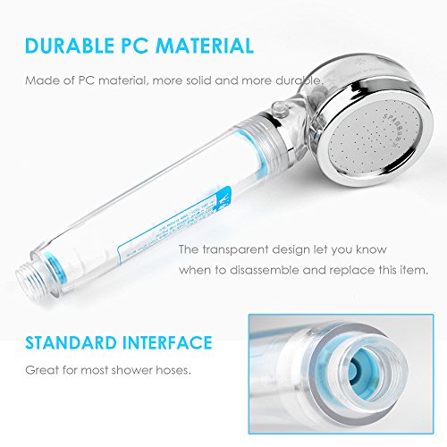 ★ DURABLE PC MATERIAL - Unlike the ABS material on the market, our shower head is made of PC material, more solid and more durable. The transparent design let you know when to disassemble and replace this item.