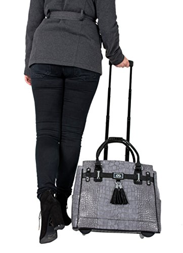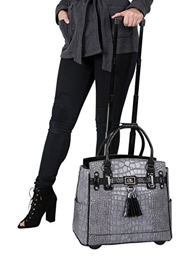 Studio : JKM Publisher : JKM Binding : Electronics Product Description Sophisticated with maximum functionality. Grab your laptop, iPad, tablet, books, files and off you go! The perfect spacious tote for work, school and travel. Look stylish wherever you go with this classic gray and black alligator rolling tote carryall bag. ----------------------------------------------------- rolling briefcase, roller briefcase, ladies laptop bag, wheeled briefcase, rolling computer bag, jkm and company, briefcase on wheels, briefcase with wheels, briefcase spinner, rolling laptop case, mobile office, women, women's. --------------- Makes a great nurse gift or graduation gift for any nursing student, law student, teacher, teaching student, graduate, business student, medical student, medical school graduation, social worker, engineer, veterinarian, graduation gifts. 0
