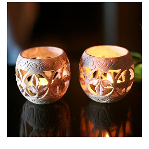 NOVICA Soapstone candleholders, Pair, Fig Leaf