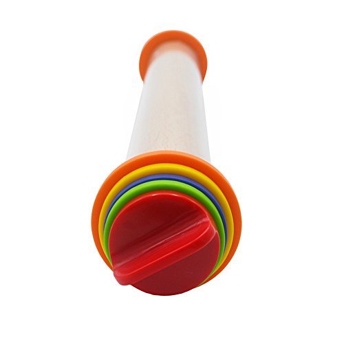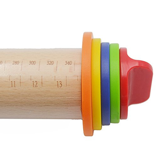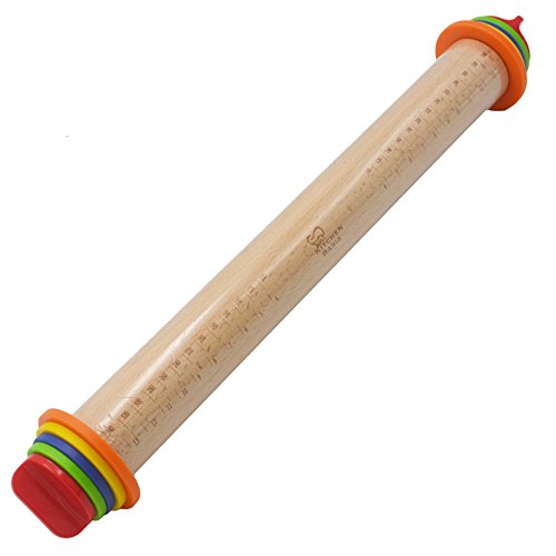 Adjustable Rolling Pin Removable Rings Beech Wood Classic for Baking Dough Pizza Pie Cookies, Multicolored by KitchenBasix