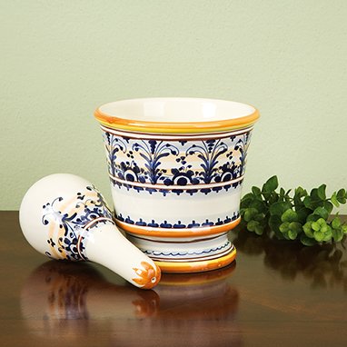 -. Feature : This Listing Is For Italian Mortar and Pestle Qty / 1 Each Mortar is 6"H x 6" dia. Pestle is 7"L. Stunning color and design make this footed mortar and matching pestle a memorable gift for any pharmacy professional. Each beautifully detailed pair is handmade and hand painted in Italy.