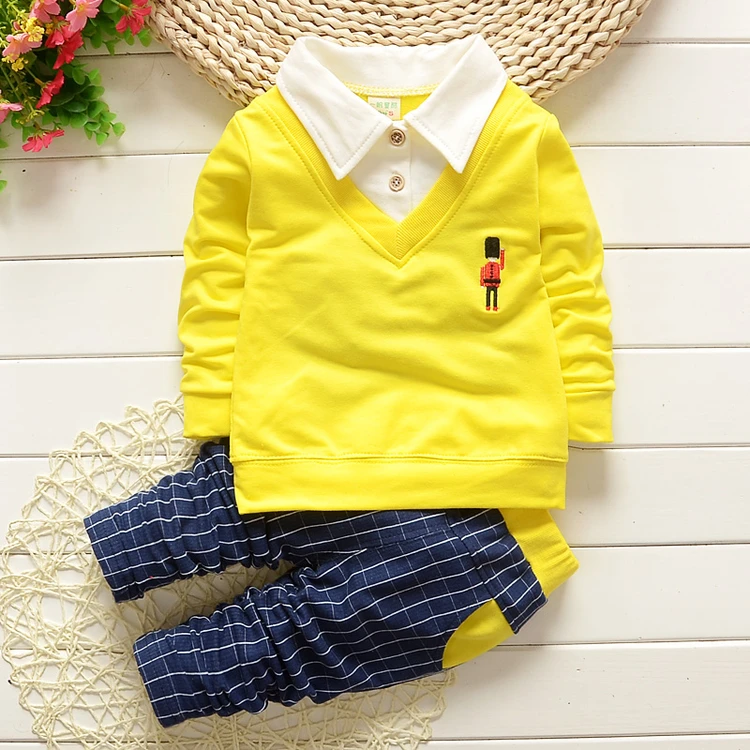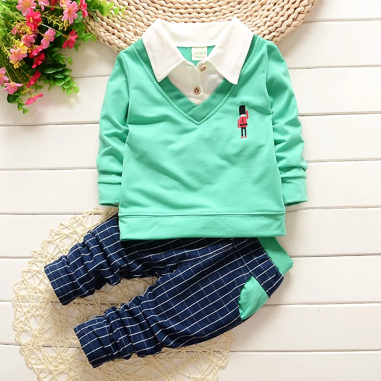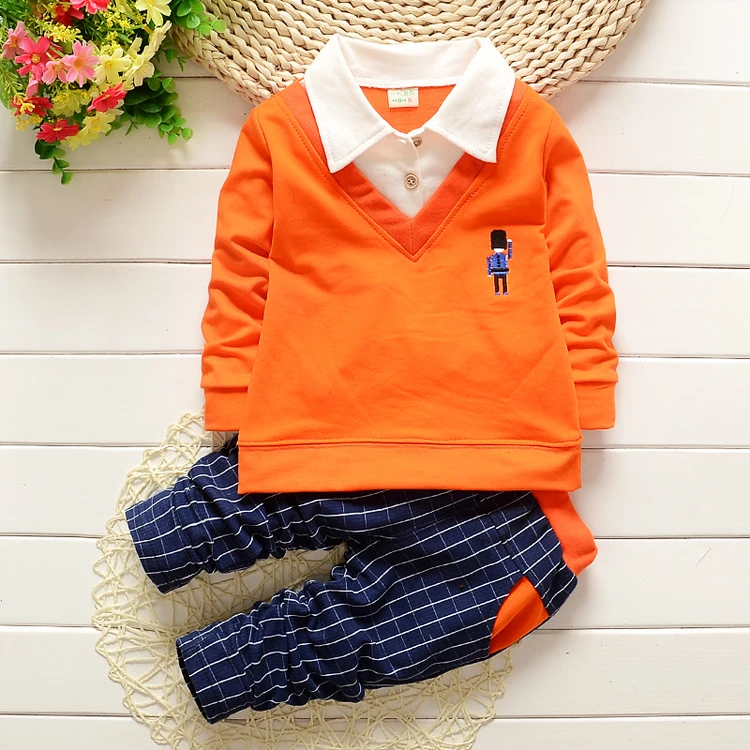 ファッション2018春の秋子供男の子女の子シャツ襟服ベビーtシャツパンツ2ピース/セットイングランドスタイル服トラックスーツ