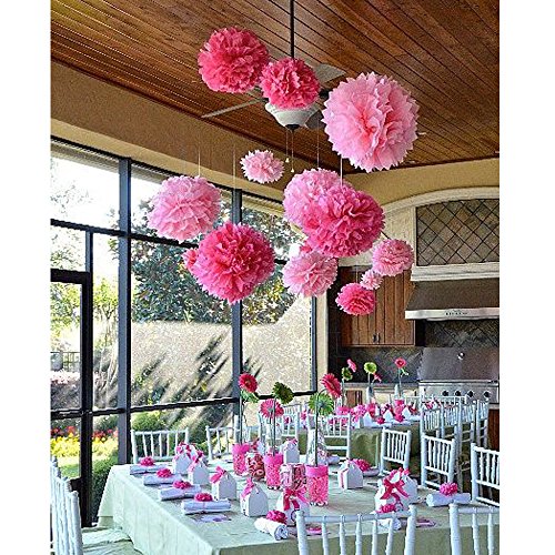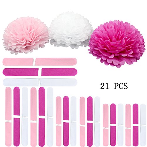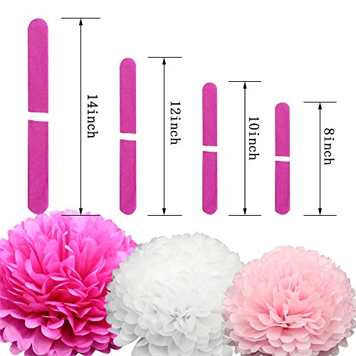 Coceca 21Pcs Tissue Paper Pom Poms Pink Paper Pom Poms 14 Inch, 12 Inch, 10 Inch, 8 Inch Pink Set Flower Ball for Birthday Wedding Party Outdoor Baby Shower Decoration