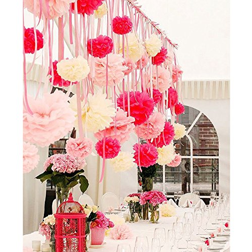 - Each paper pom pom comes with 1 ribbon for you to hang conveniently. Also comes with a large roll of ribbon for you to hang in a long distance. You need to fold the pom pom pieces with your hands and you can enjoy the fun of DIY